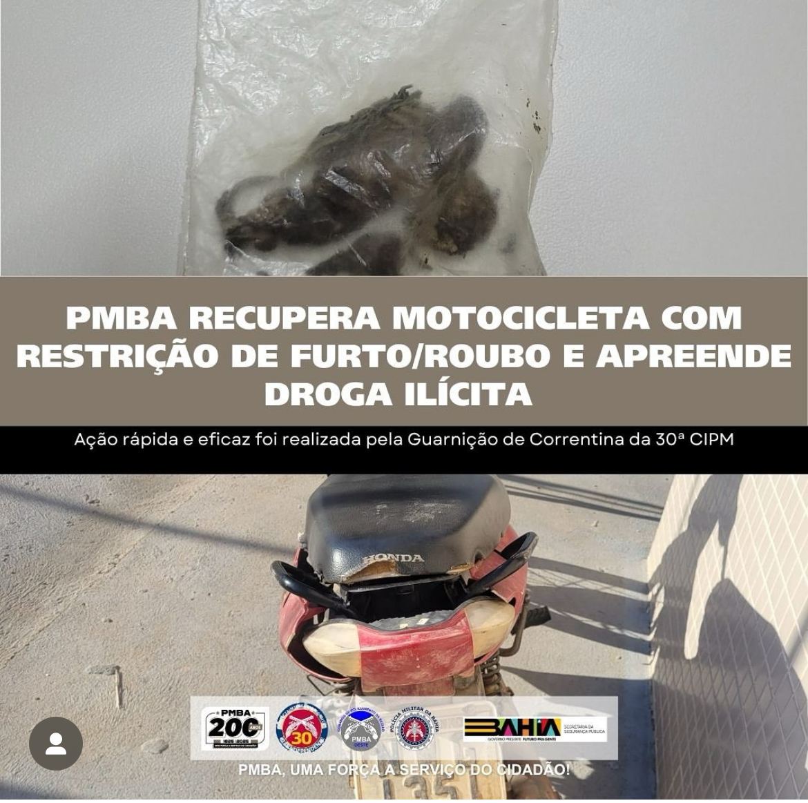 Diante dos fatos, o Conselho Tutelar foi acionado para acompanhar o procedimento, e o menor infrator, juntamente com a motocicleta recuperada e a substância entorpecente apreendida, foi conduzido e apresentado na Delegacia de Polícia Civil de Correntina, para a adoção das medidas cabíveis.