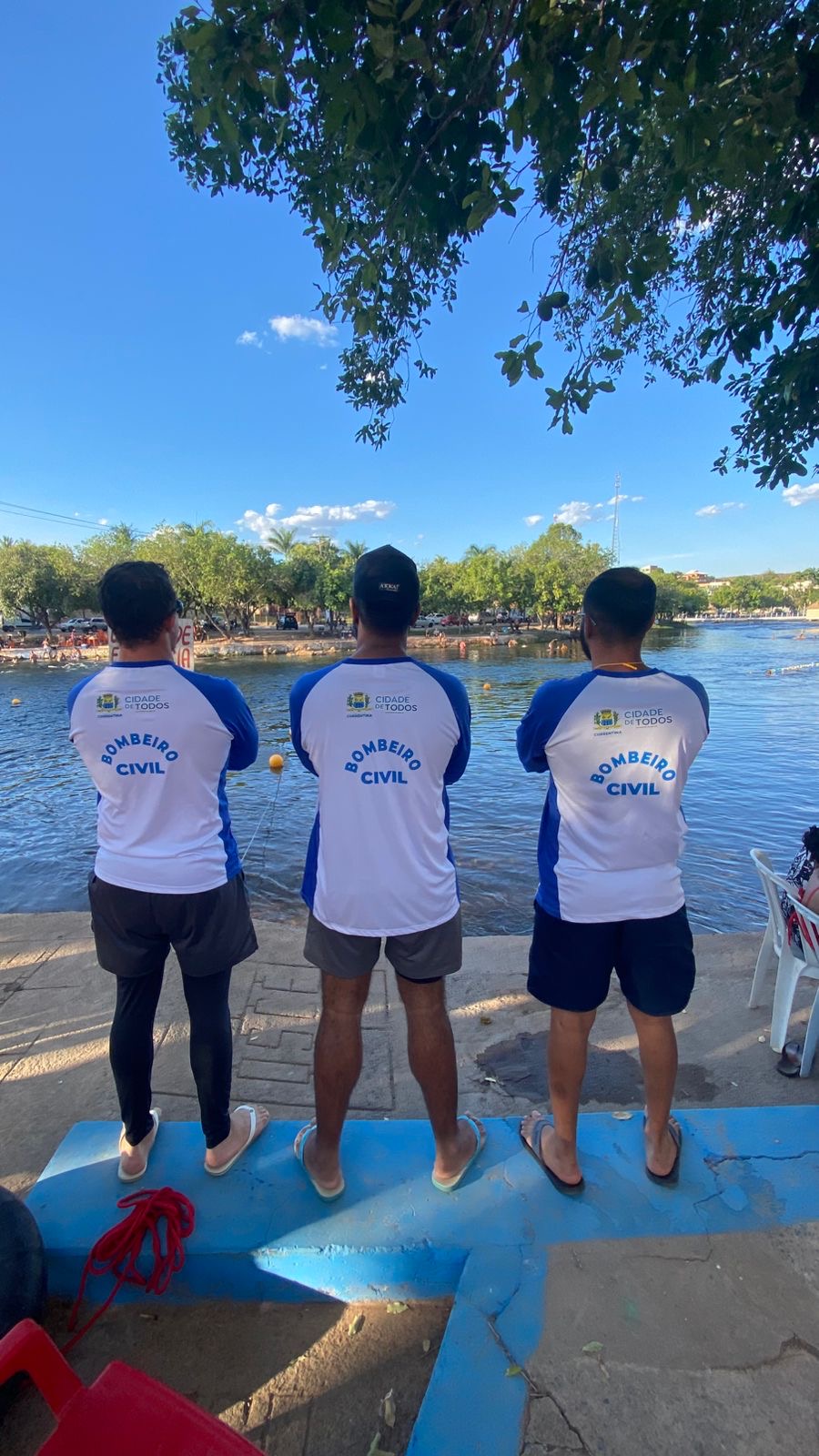Os Bombeiros Civis estão posicionados estrategicamente na orla, preparados para atuar em situações de emergência, prestar primeiros socorros, orientar banhistas, monitorar áreas de risco e agir de forma rápida sempre que necessário. A atuação também inclui atividades preventivas, como fiscalização visual e orientações sobre comportamento seguro às margens do rio.