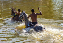 Contudo, se porventura a água não voltasse, a procissão dos sedentos direcionava-se para o rio, ladeira abaixo. Apesar disso, ainda assim valia apena. Isto porque todos podiam se esbaldar naquelas águas cristalinas, límpidas e potáveis sem, todavia, correr-se risco de contaminação. O chafariz era só uma gota d’água; um chamariz para tudo acontecer. A lata cheia na cabeça, o menino banhado, a roupa lavada, a amizade tecida e o amor conquistado. Claro! Aquele Serviço Público Municipal de Correntina fornecia mais do que água para a população. Ele possibilitava também múltiplos e freqüentes encontros entre as pessoas, assim como trocas de valores e solidariedade.