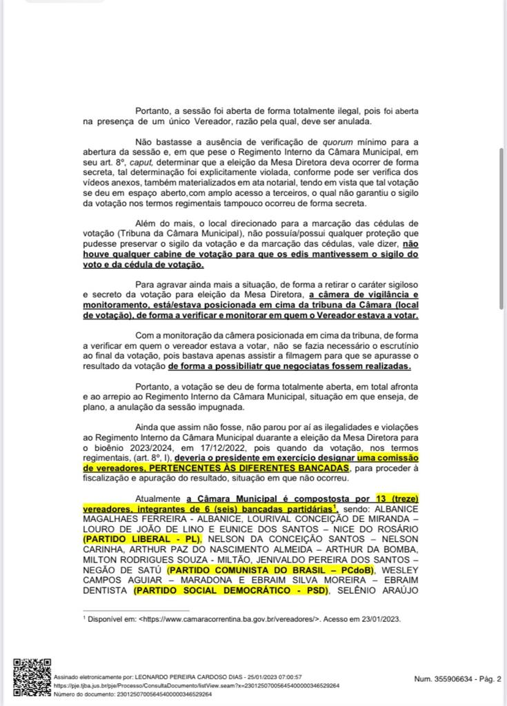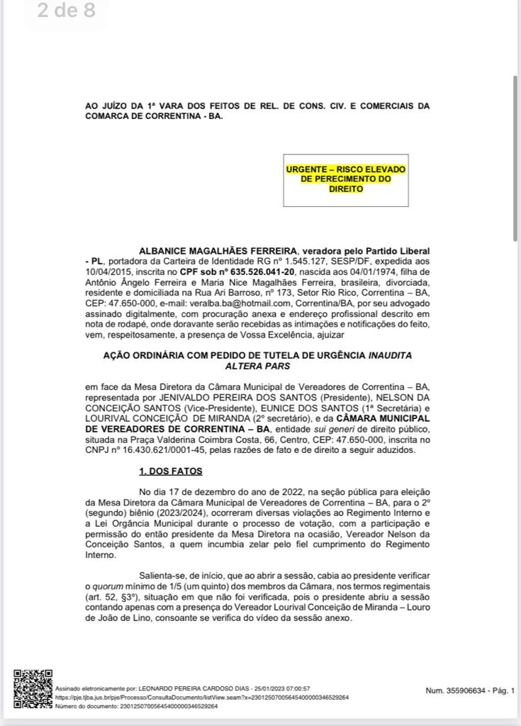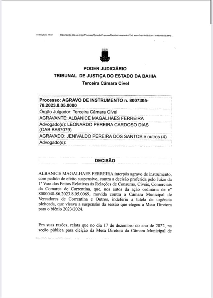 Vereadora Albanice Magalhães Ferreira (PL) sofre a segunda derrota em face de processo para ANULAR a eleição da Mesa Diretora da Câmara, biênio 2023/2024 : Jenivaldo Pereira dos Santos (PCdoB) Presidente; Nelson Conceição Santos (PCdoB, Vice presidente; Eunice dos Santos (PL), primeira secretária e Louro de João de Lino (PL), segundo Secretária.