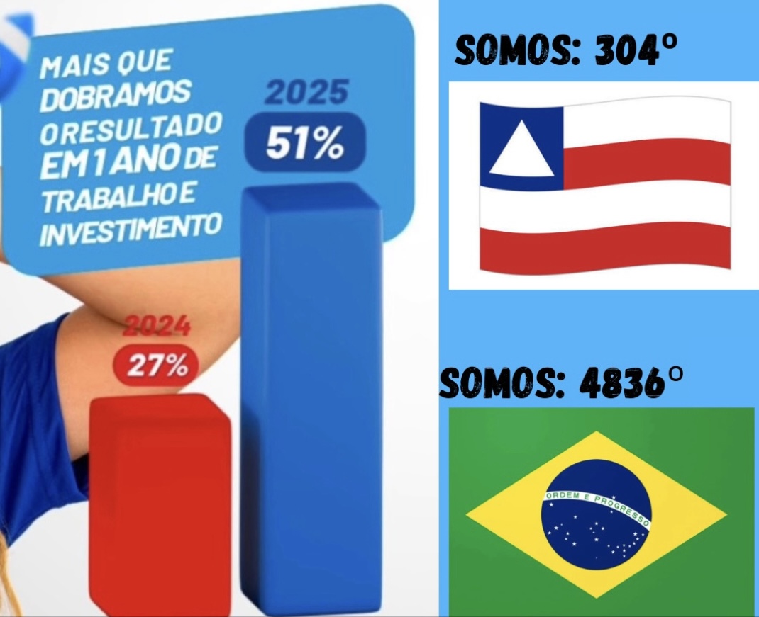 No ano de 2024, o índice foi vergonhoso: somente 27% dos estudantes do segundo ano do ensino fundamental sabiam ler e escrever. Naquele ano, a meta nacional era de 60%, enquanto a média da Bahia ficou em 36% e a nacional em 59%.