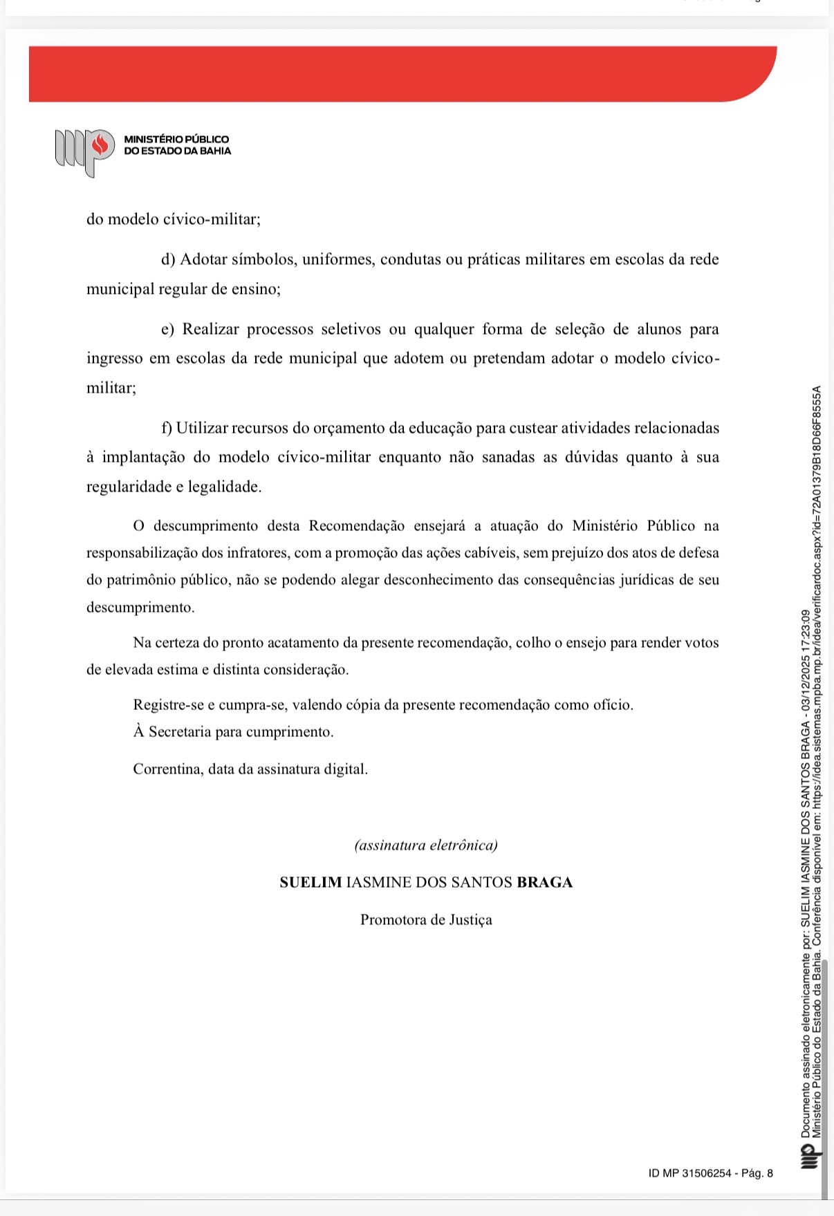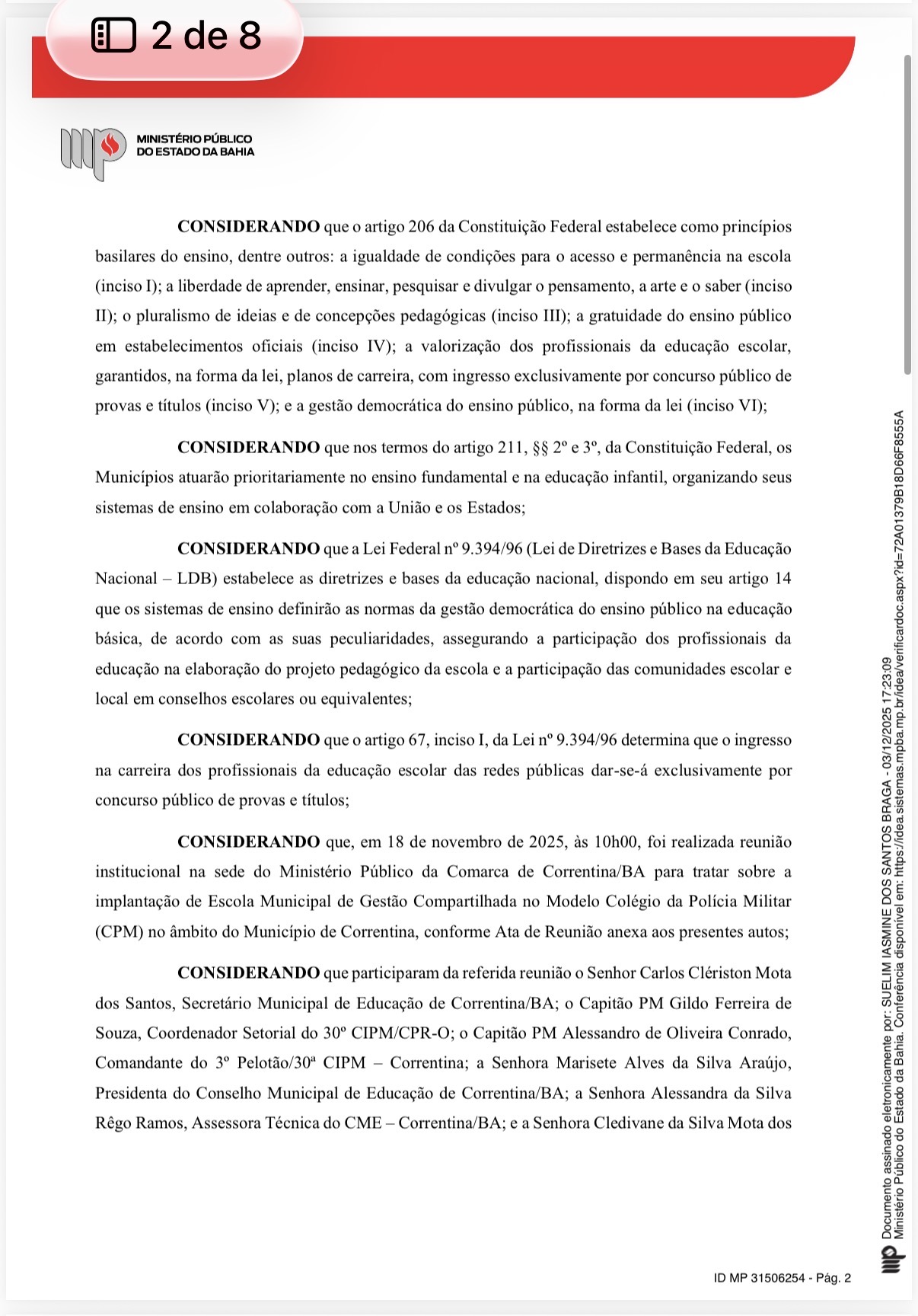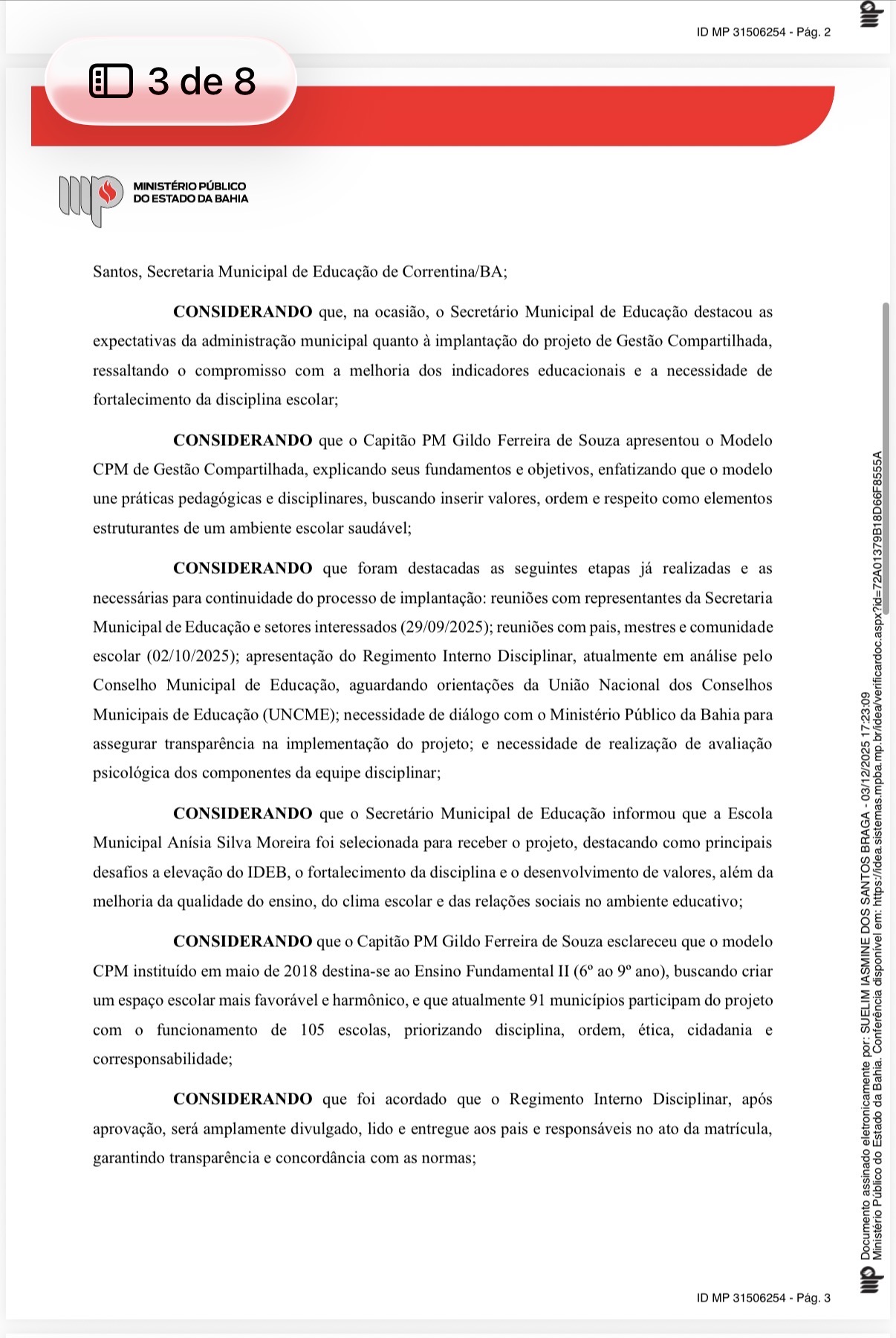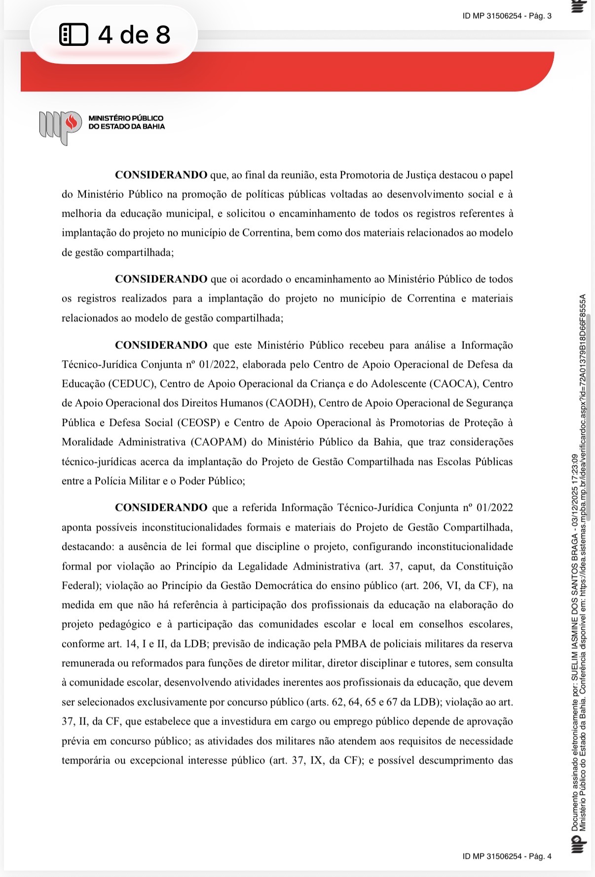 E Correntina está vivendo exatamente esse risco! O secretário de educação insiste em implantar o modelo de ensino cívico-militar, mesmo diante de alertas e manifestações de instituições responsáveis, como Ministério Público, conselhos municipais, sindicato e outros órgãos competentes.