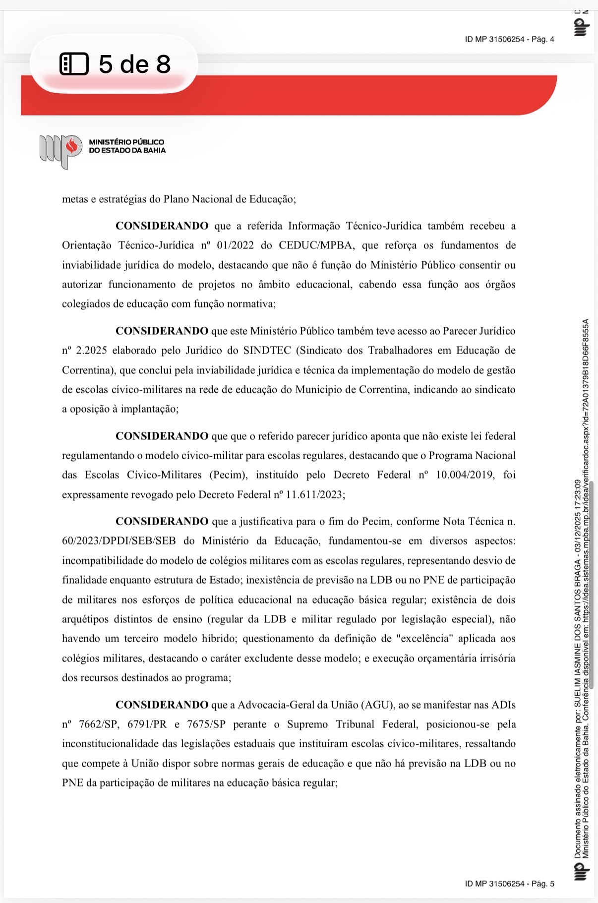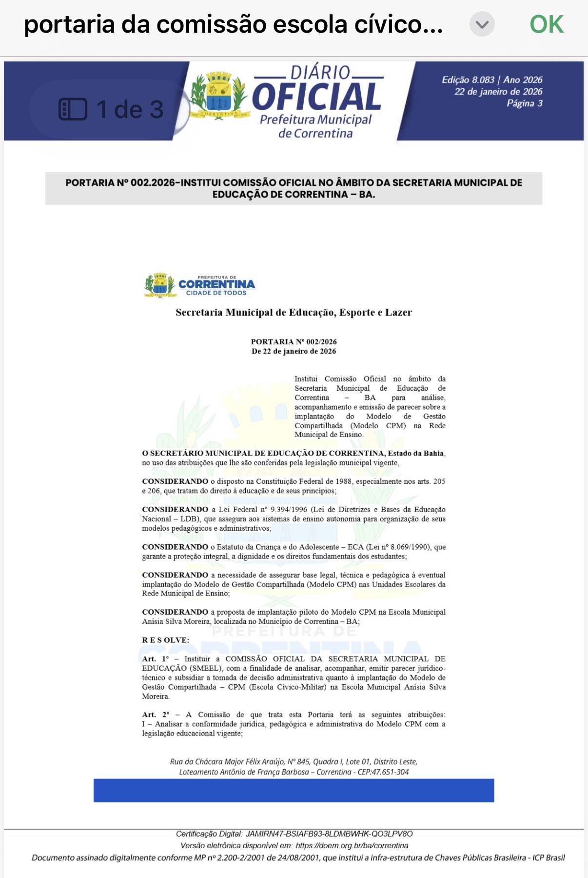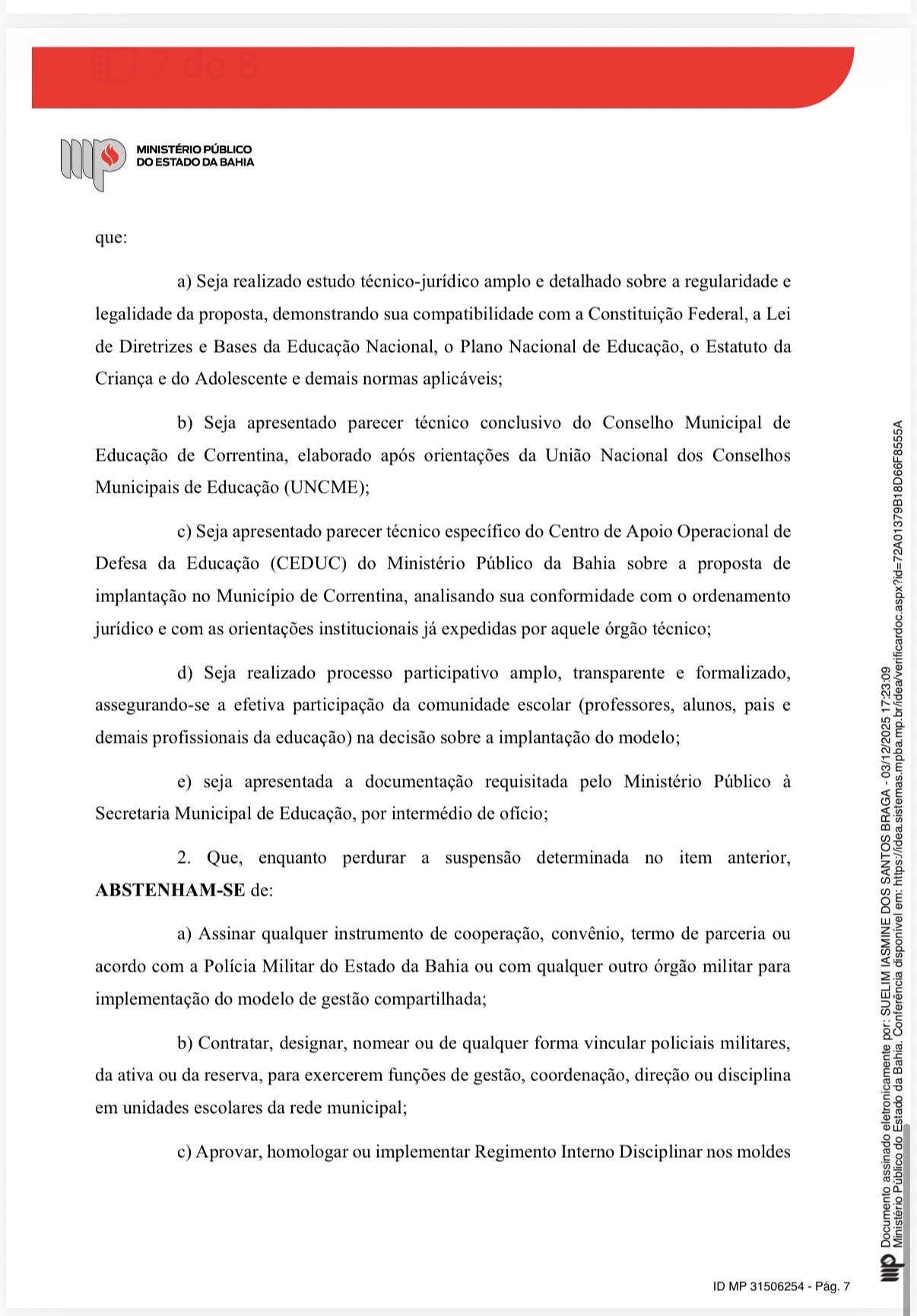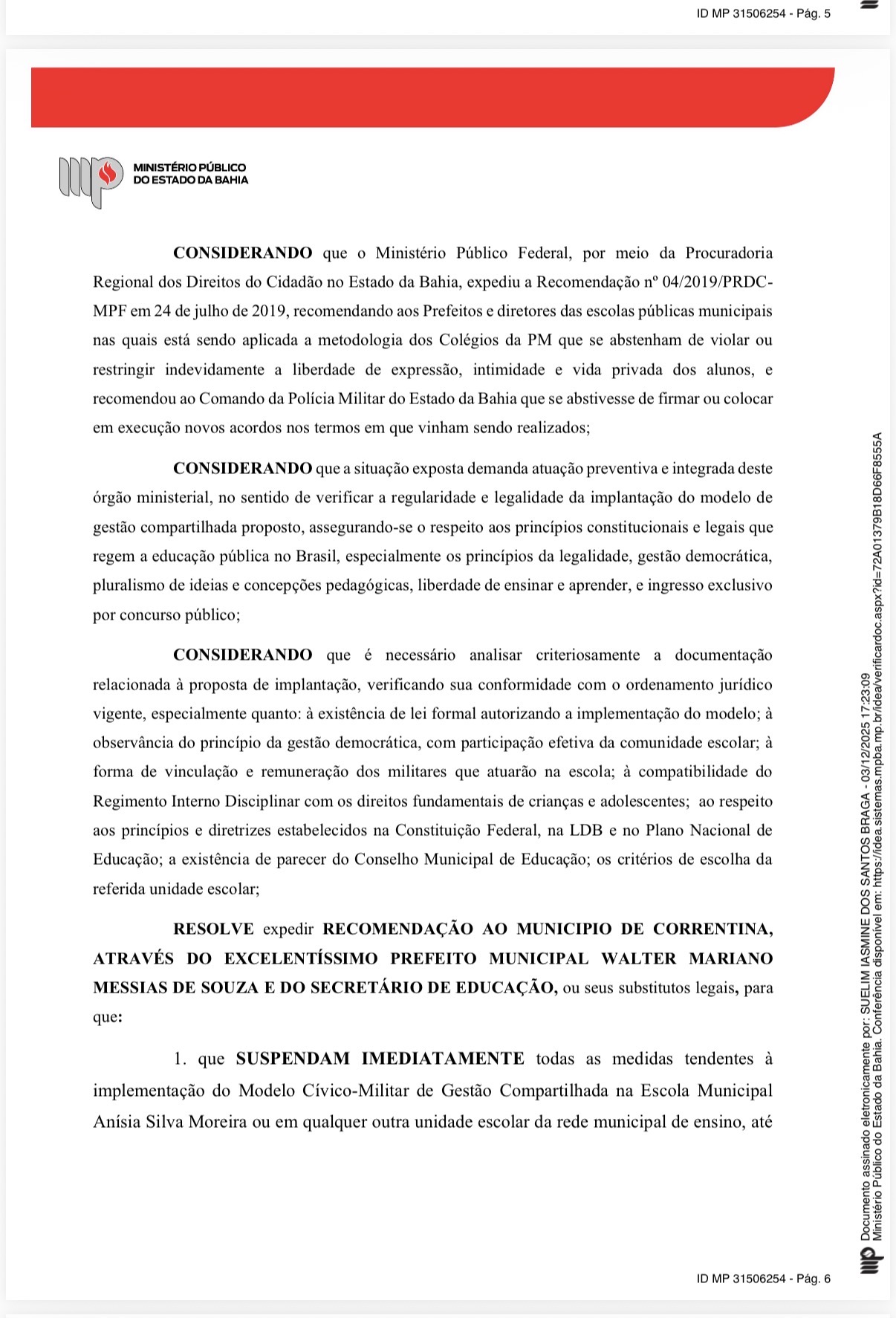 E Correntina está vivendo exatamente esse risco! O secretário de educação insiste em implantar o modelo de ensino cívico-militar, mesmo diante de alertas e manifestações de instituições responsáveis, como Ministério Público, conselhos municipais, sindicato e outros órgãos competentes.