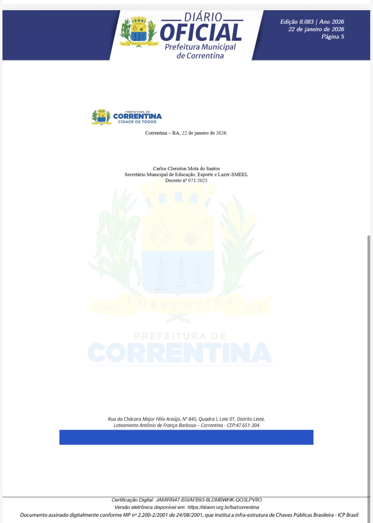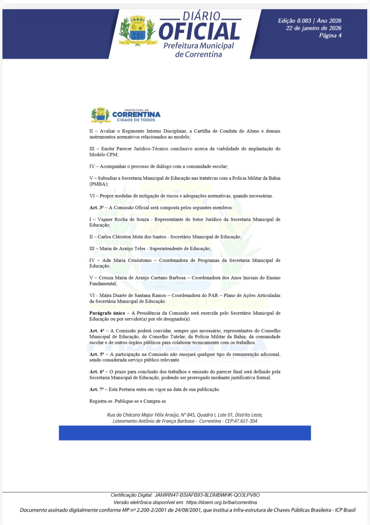 Quem defende polícia em sala de aula não quer resolver a educação: quer calar a juventude. Correntina não precisa formar soldados. Precisa formar cidadãos. E isso só se faz com professores valorizados, políticas sociais e respeito à escola.