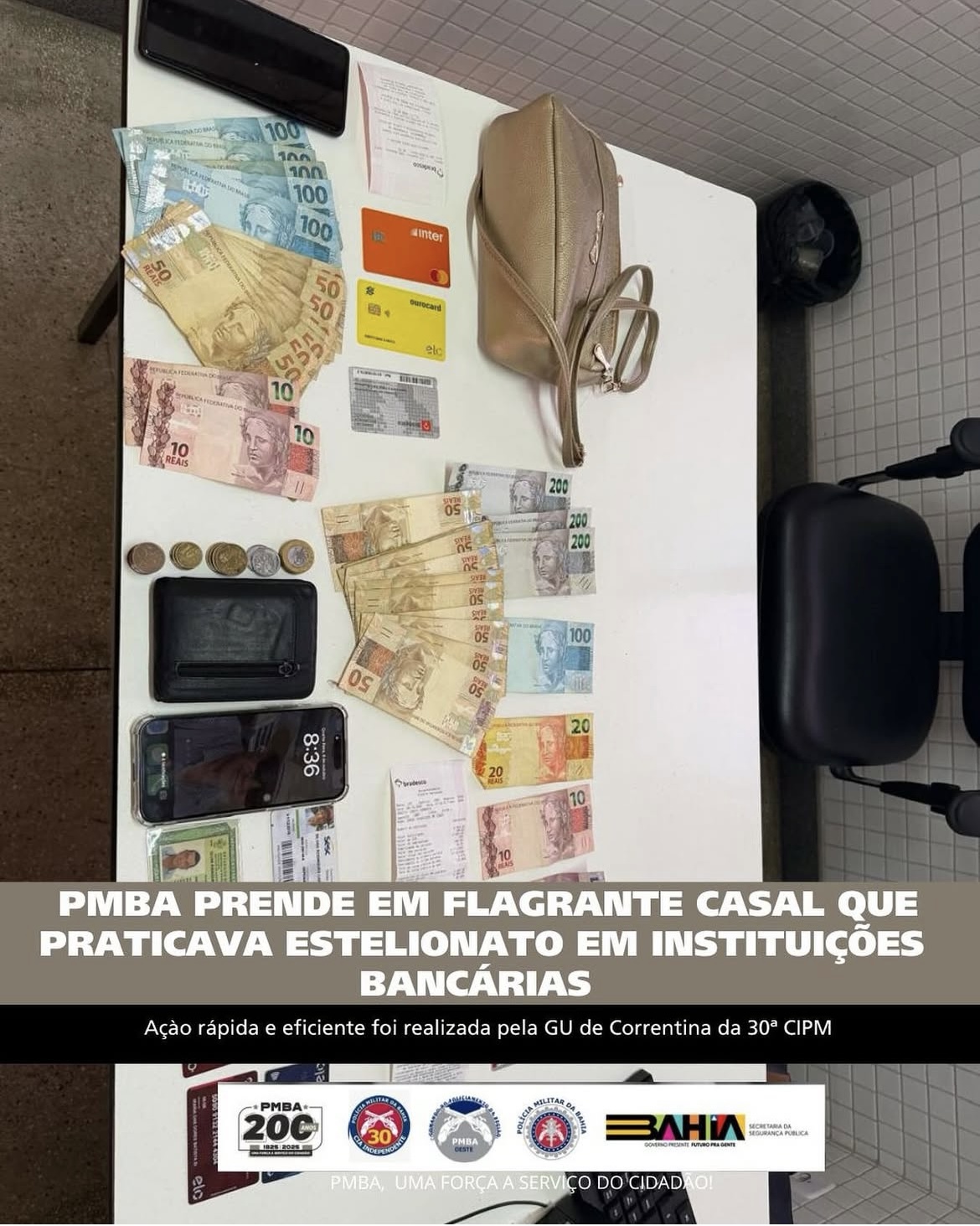 Polícias Militares da 30ª CIPM, por volta das 08h, de ontem, 8/10,  foram informados de que um casal estaria praticando estelionato na agência bancária localizada na Rua Benjamim Constant, no centro da cidade.