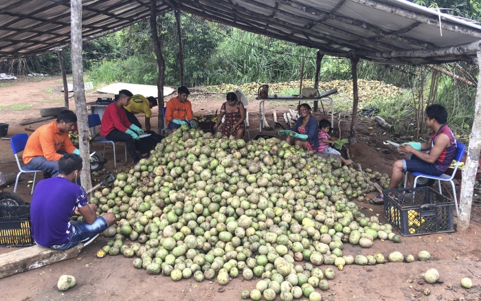 E assim, com olhos treinados e habilidades desenvolvidas, aqueles extrativistas sabiam escolher bons frutos apenas olhando para o formato das árvores. Em todos os anos, logo no começo de mês de setembro, homens e mulheres, invariavelmente, saíam em turmas ou sozinhos, para a colheita, disputando com os insetos, com bichos e com pessoas, os espaços, as árvores e seus frutos. Esses veteranos da caça e da cata marcavam o rumo e o prumo, abocanhando, como troféu, os melhores frutos para o seu uso comestível ou para a barganha comercial no burburinho da Vila.