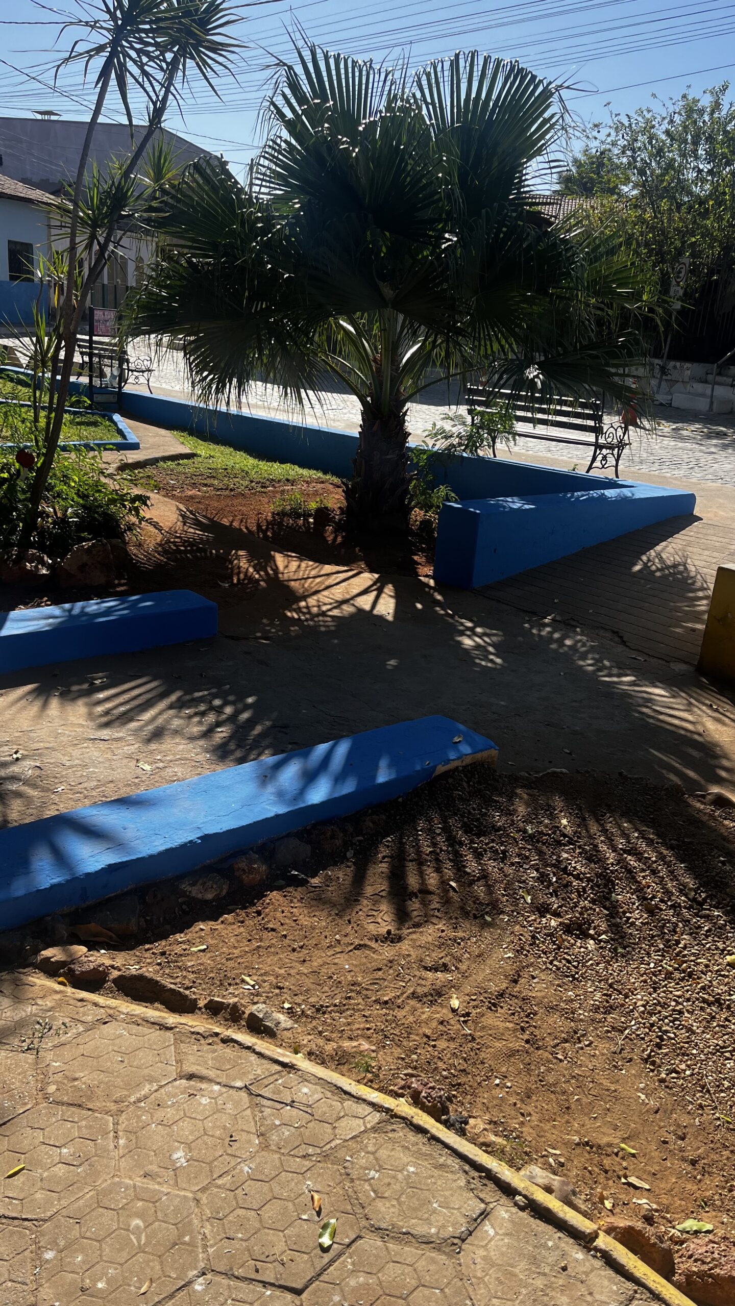 Caro leitor, vindo à nossa cidade, não se surpreenda com as novas invenções que pintam por aqui… Se você quiser encontrar o intenso azul em Correntina, não olhe para o céu, mas, olhe para os espaços ao seu redor na carícia cidade. O azul passeia vívido e próspero pelos meios fios, pelos bancos das praças, pelos paredões dos edifícios à beira do ranchão e outros entornos … Você verá que azul está tomando conta da cidade inteira. Pode não ser a cor da moda, é claro… Mas, pode ser a cor de uma ideologia. Por falar nisso, recordei-me de uma época, em que a gente encontrava um amigo pela rua e dizia: e aí, tudo bem? Ele respondia: tudo azul! Era um barato! Isto queria dizer, que tudo estava bem.