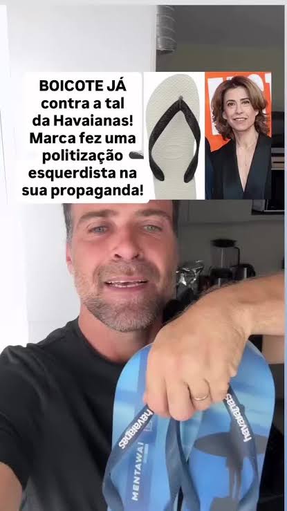 Outro vídeo que vi, foi de um sujeito, com cara de machão, musculoso, Ele estava com cinco ou seis pares de sandálias Havaianas, toda limpinhas, aparentemente sem terem sido usadas… Por isso, imaginei que ele tenha ido a uma loja e comprado as sandálias para fazer o seu protesto, cortando com uma faca as Havaianas. Antes, ele puxou com todas a força as correias… mas elas não soltaram – como garante um comercial antigo da marca. Aí, aparente frustrado e com raiva, pegou uma faca, e com cara de valente, de MA-CHO, cortou as tiras e depois, as sandálias. Ah! Não faltou o Dudu Bananinha jogando um par de sandálias no lixo. Cena que foi repetida em muitos vídeos, mostrando pessoas jogando as sandálias da marca, no lixo, revoltadas, e declarando que nunca mais as usaria… Muitos deles fazendo propaganda de outra marca, a que usariam a partir de então.