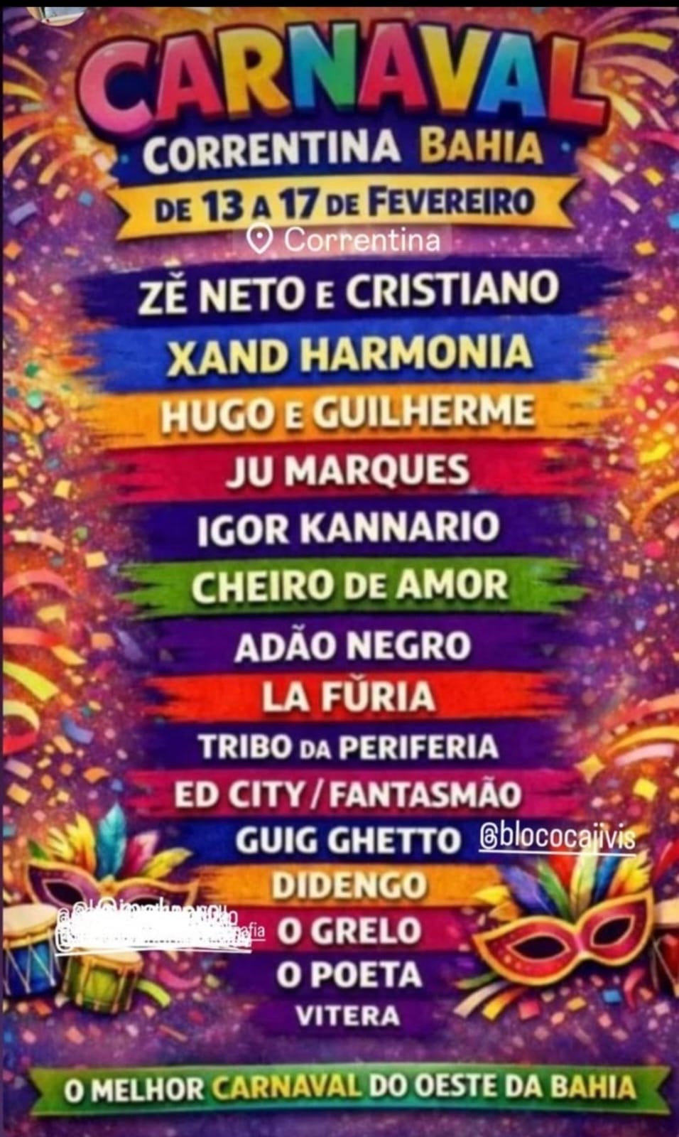 DESCARACTERIZAÇÃO – A descaracterização do Carnaval, não apenas aqui em Correntina, mas também em muitas cidades da Bahia, é um processo que visa eliminar essa nossa manifestação identitária e cultural. Ano após ano, bandas, cantores e ritmos alheios ao festejo, que nada, nada, nada têm a ver com a folia tomam o lugar da música típica dessa nossa festa tradicional. Tornando o Carnaval uma festa cujo único objetivo é atender aos interesses comerciais e financeiros dos produtores e empresários que dominam o mercado fonográfico-musical brasileiro. Pessoas que estão “se lixando” para a tradição, a cultura carnavalesca e o seu imenso legado cultural. Porque nada disso lhes interessa.