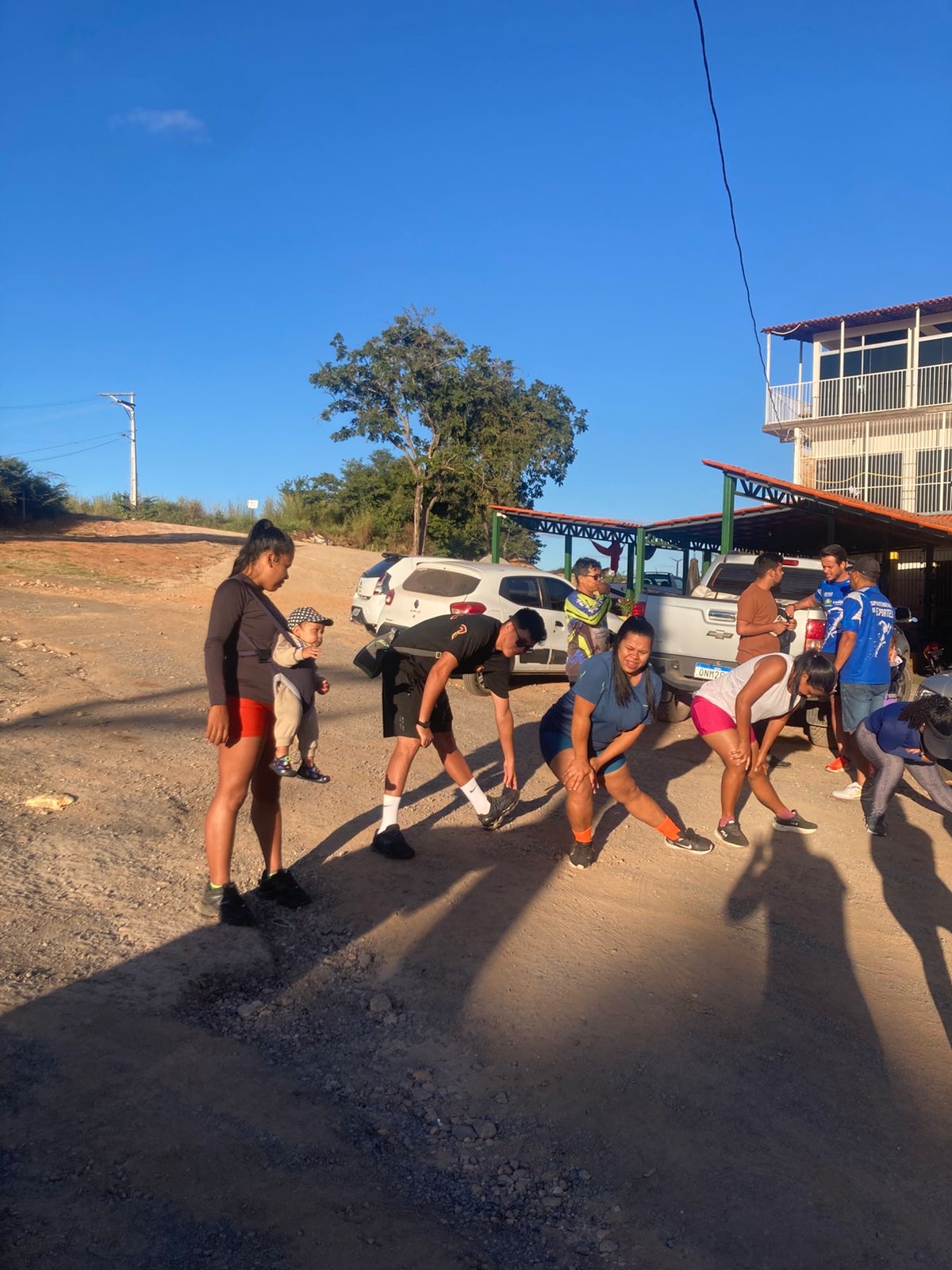 Minutos depois chega o pessoal da caminhada, fazendo graça. Eu mesma falava com o senhorzinho sentado junto ao portão da casa. “Bora seu zé!”. Ele ria e acenava… O carro de um conhecido passava e disparava a buzina. Eu gritava: “Encosta e vem”.