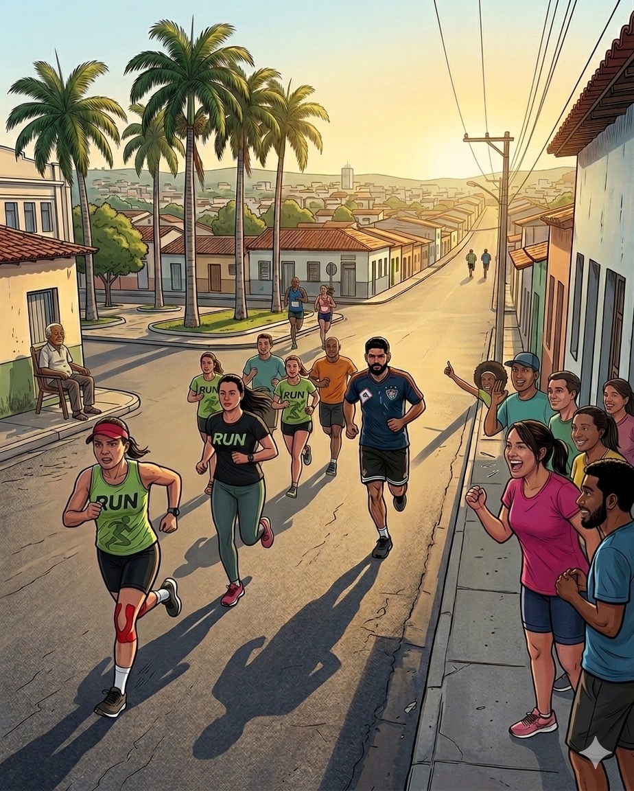 Já quase no meu final de prova, entre uma passada e outra, com os pés no chão e os pensamentos mais altos, me dei conta de que a vida é esse asfalto interminável. Estamos todos ali, cada um no seu compasso, alguns correndo como se estivessem fugindo, outros, apenas para passar alguém. Há também quem caminhe só pra não cair. A diferença é que na prova a linha de chegada é clara; na vida, às vezes não nos atentamos ao mapa e entregamos todo o nosso fôlego para algo que sequer garante boa recompensa.