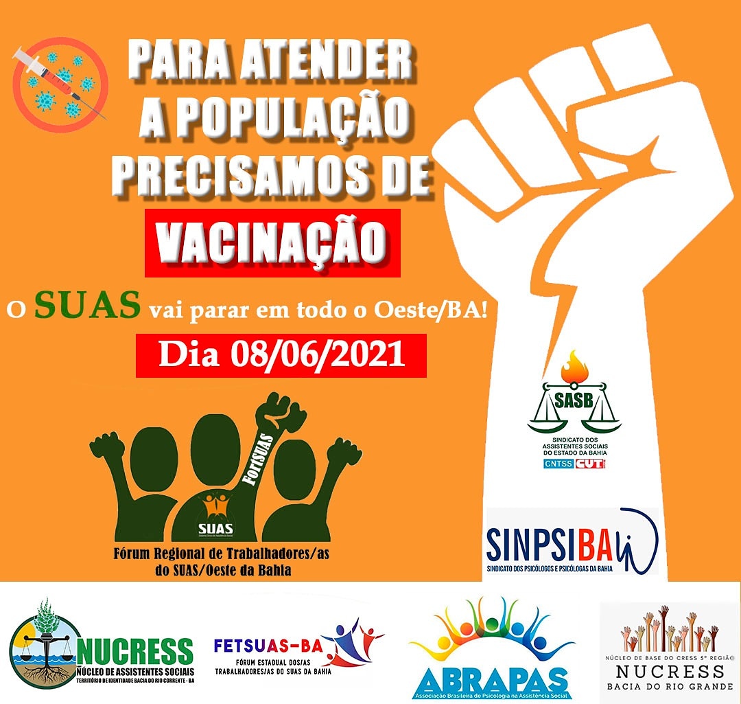 A paralização do Oeste da Bahia que se soma a outras regiões do Estado, clama pela vacina no SUAS e pela visibilidade da Assistência Social!